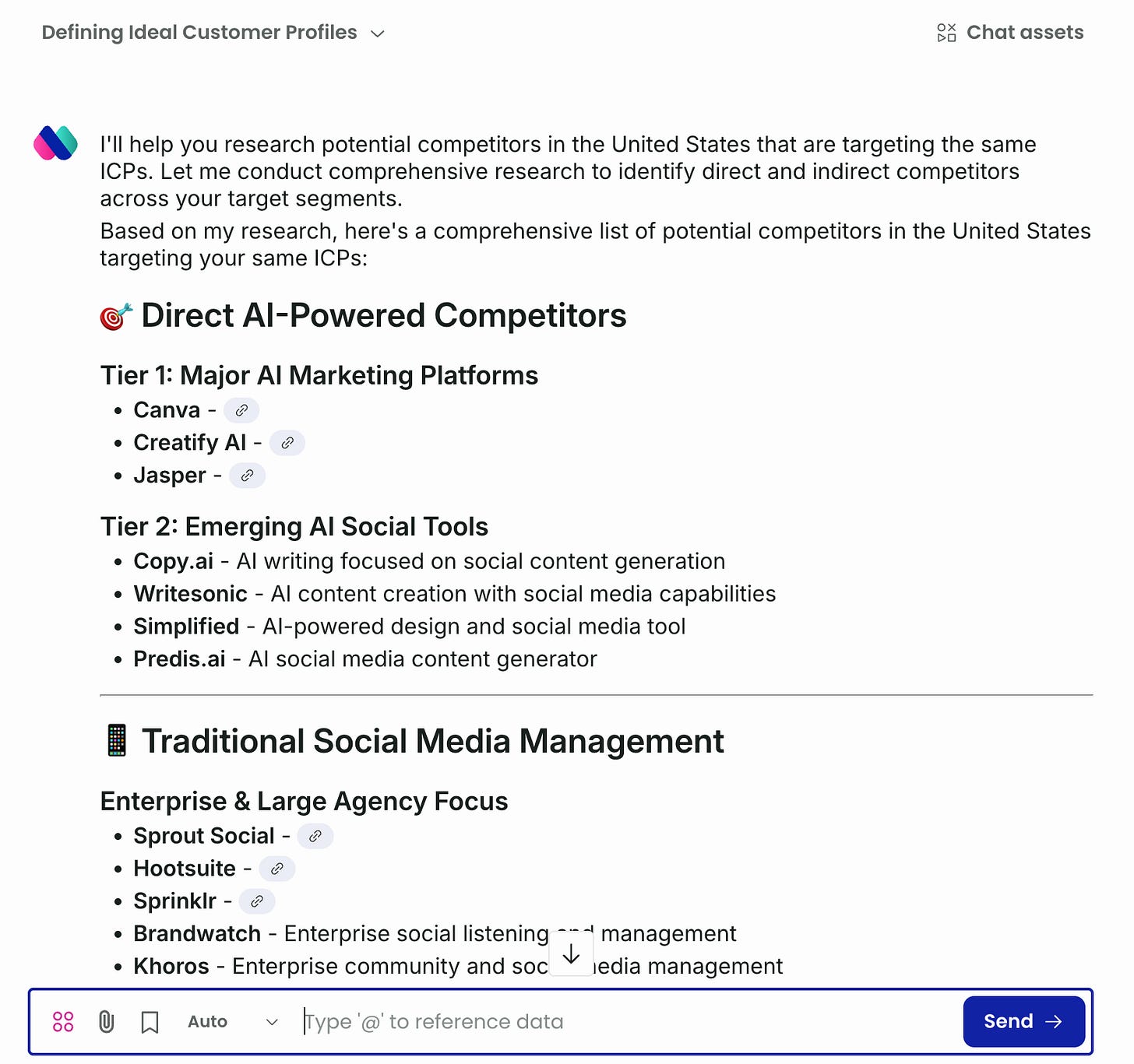 We just asked mavic to find the relevant competitors in United States based on the identified ICPs.